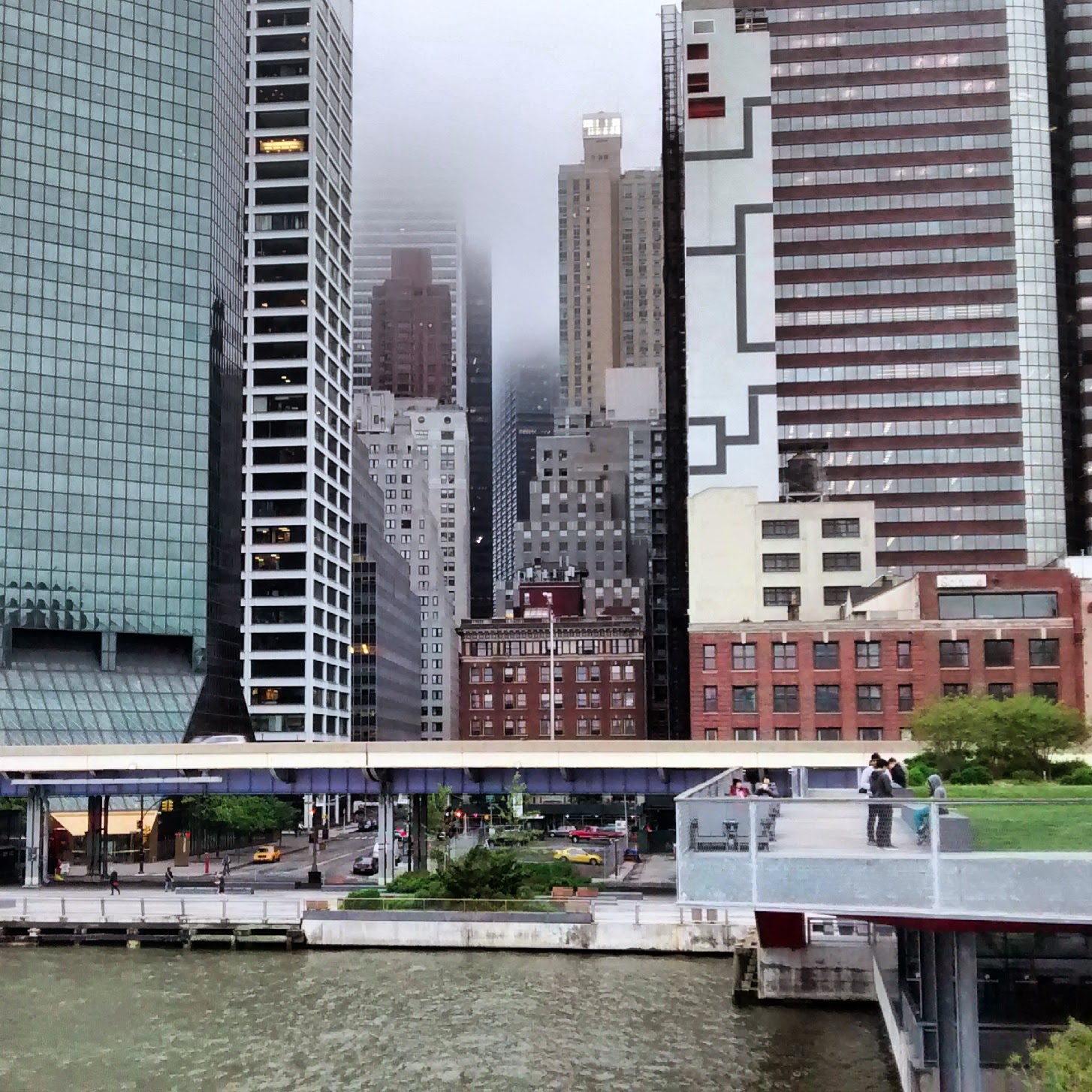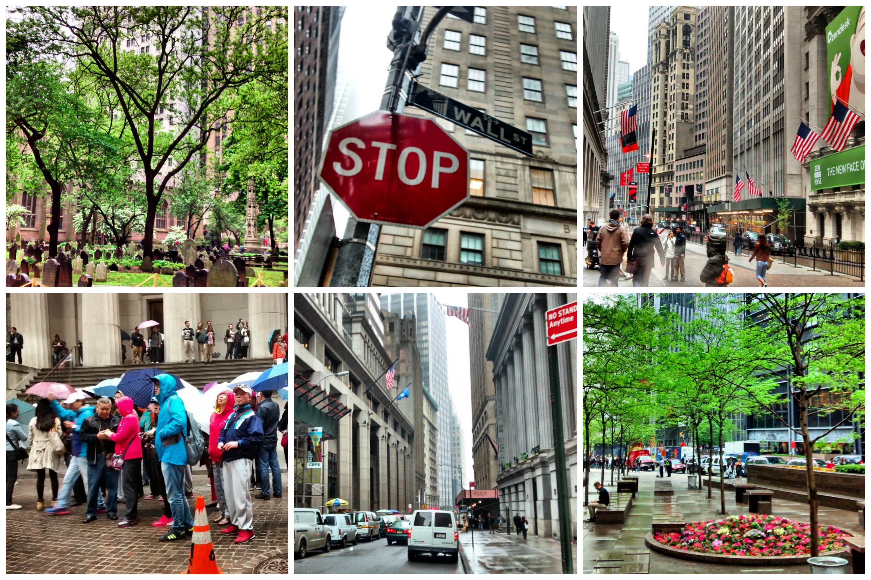 Törkkiksestä kävelimme minun toiveesta Wall Streetin ympäristöön. Pidän alueesta jostain syystä paljon, ja erityisesti hieman usvaisella säällä. Harmaan kiiltävät pilvenpiirtäjät katoavat hienosti pilvisumuun ja keltaiset taksit korostuvat entisestään. Tällä kertaa pörssin edessä kuhisi hillittömästi japanilaisia padit kädessä kuvaamassa ja matkan varrella oli alkanut hieman satamaan, joten jatkoimme melko pian matkaa. Olimme menossa satamalaitureiden suuntaan, kunnes alkoi satamaan täysillä ja pakenimme takaisin metroaseman suojaan. Päätimme skipata laiturit ja ajoimme sadetta pidelläksemme Herald Squarelle.