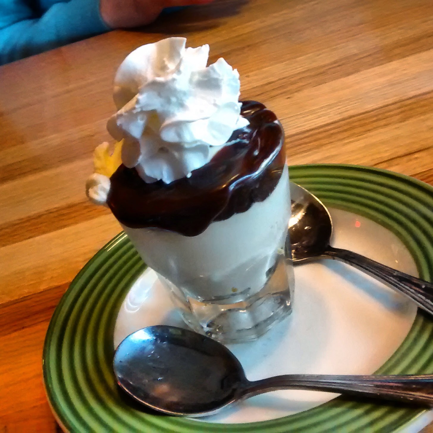 Ruokailuvaihtoehtoja kylässä ei ole kovin huimasti ja me valitsimme Jenkkilän Rosson, Applebee’sin, joka oli tuttu näky viime kesän road tripiltä, mutta täysin kokeilematta. Saimme lounasaikaan viimeisimpiä vapaita pöytiä ja koko ajan ravintolassa oli hieman ruuhkaista ja kiireistä. Ruoka oli perushyvää, mutta muutama moitteen sanakin löytyi: ensimmäisessä salaatissani oli homehtunut kirsikkatomaatti (sain toki kokonaan uuden salaatin) ja jälkkäriksi tilaamassamme hot fudge sundaessa ei ollut kirsikkaa päällä, nyyh! Kyllä ei elämässä mene nallekarkit tasan, kun toisten sundaesta puuttuu kirsikka, heh. Olkoon kuinka paha säilykekirsikka tahansa.