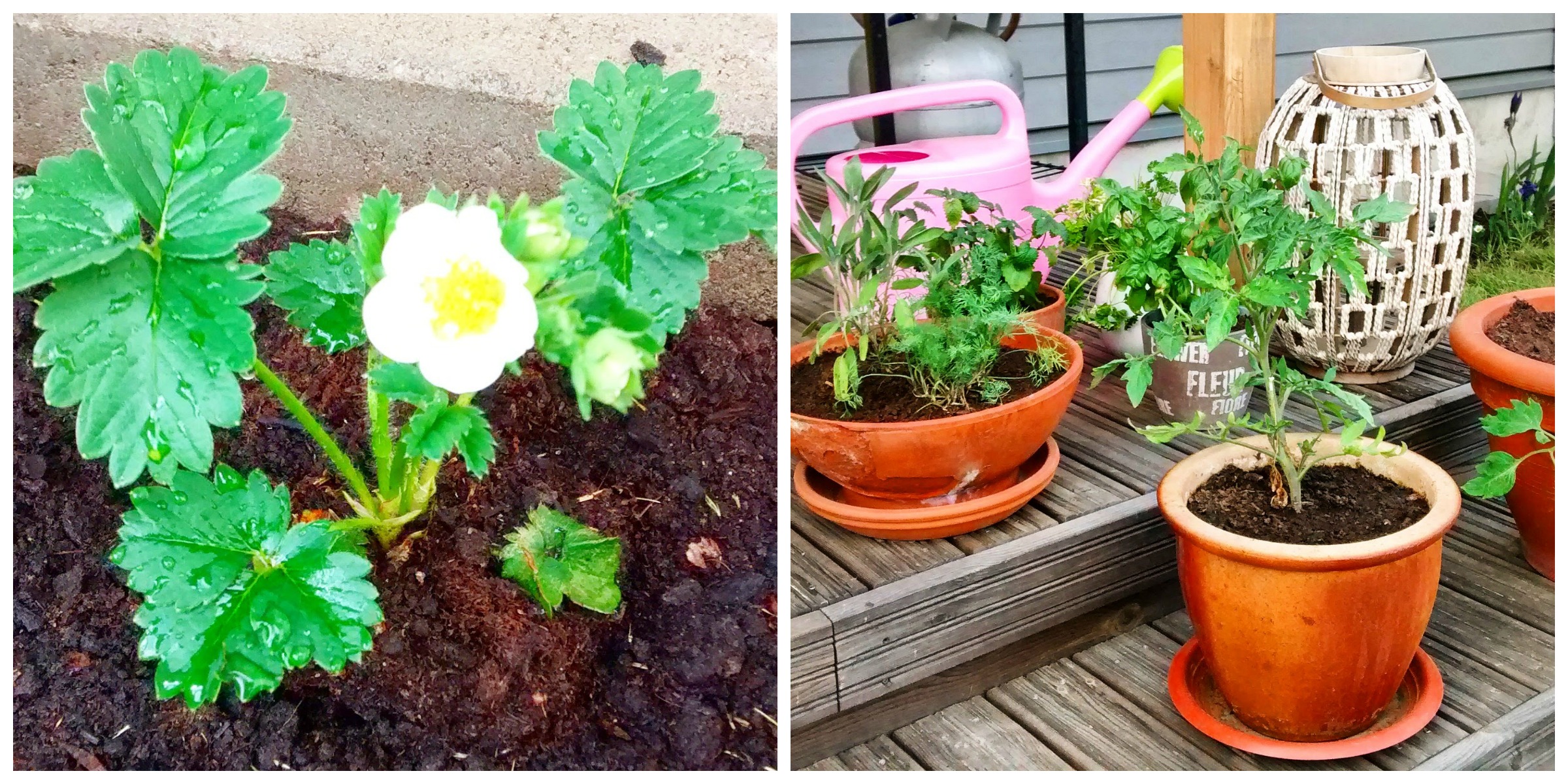 2. Mansikat. Asumme rivitalokolmiossa kaupungin laidalla ja minulla on muutaman vuoden ajan ollut pieni takapiha. Muistelin muutama viikko takaperin haikeana lapsuuden kotini pihaa, jolla kasvoi ihan kaikkea omenapuista kasvimaahan ja marjapensaista puutarhavadelmiin. Haluaisin sellaisen pihan. Se saisi olla vähän villiintynyt ja boheemi, sillä tuskin jaksaisin pitää mitään täysin ojennuksessa. Toistaiseksi on kuitenkin tyytyminen kymmeneen mansikan taimeen (jotka kukkivat kaikki!), kahteen tomaatin taimeen ja yrtteihin, jotka istutin pari viikkoa sitten.