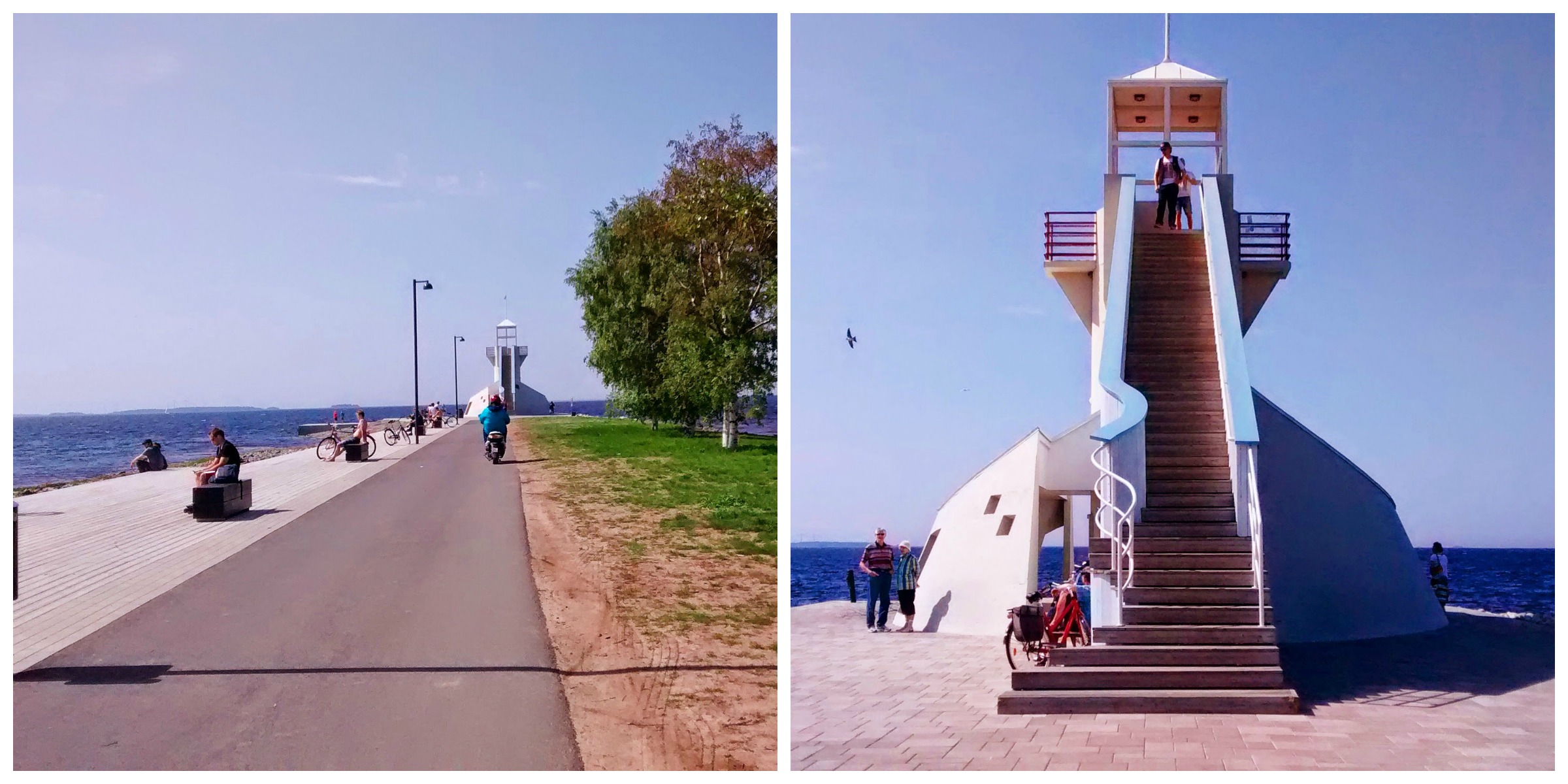 Rannan toisessa päässä on tuttuun tapaan majakan mallinen rakennus (jossa ei ole tällä hetkellä mitään toimintaa, mutta mihin ilmeisesti tulee vielä kesäkuun aikana kahvila, jee!) ja sen luona pitää tietenkin käydä kävelemässä. Matkan varrella näimme Nallikarin uuden kahvila-ravintolan, jonka ulkoasu noudatti hyvin pitkälti aikaisempaa (rumaa) lautarakennusta. Hieman ennen majakkaa rannalle oli rakennettu pieni puinen laiturimainen pätkä boardwalk-tyyliin. Siinä oli kiva istuskella, enkä pistäisi pahaksi, jos se olisi vielä hieman pidempi. Odotan jo innolla tulevia kesän rantapäiviä, jospa nämä ei jäisi ainoiksi (sanoo ikuinen optimisti, joka on pessimisti ainoastaan Suomen kesäsäiden suhteen).