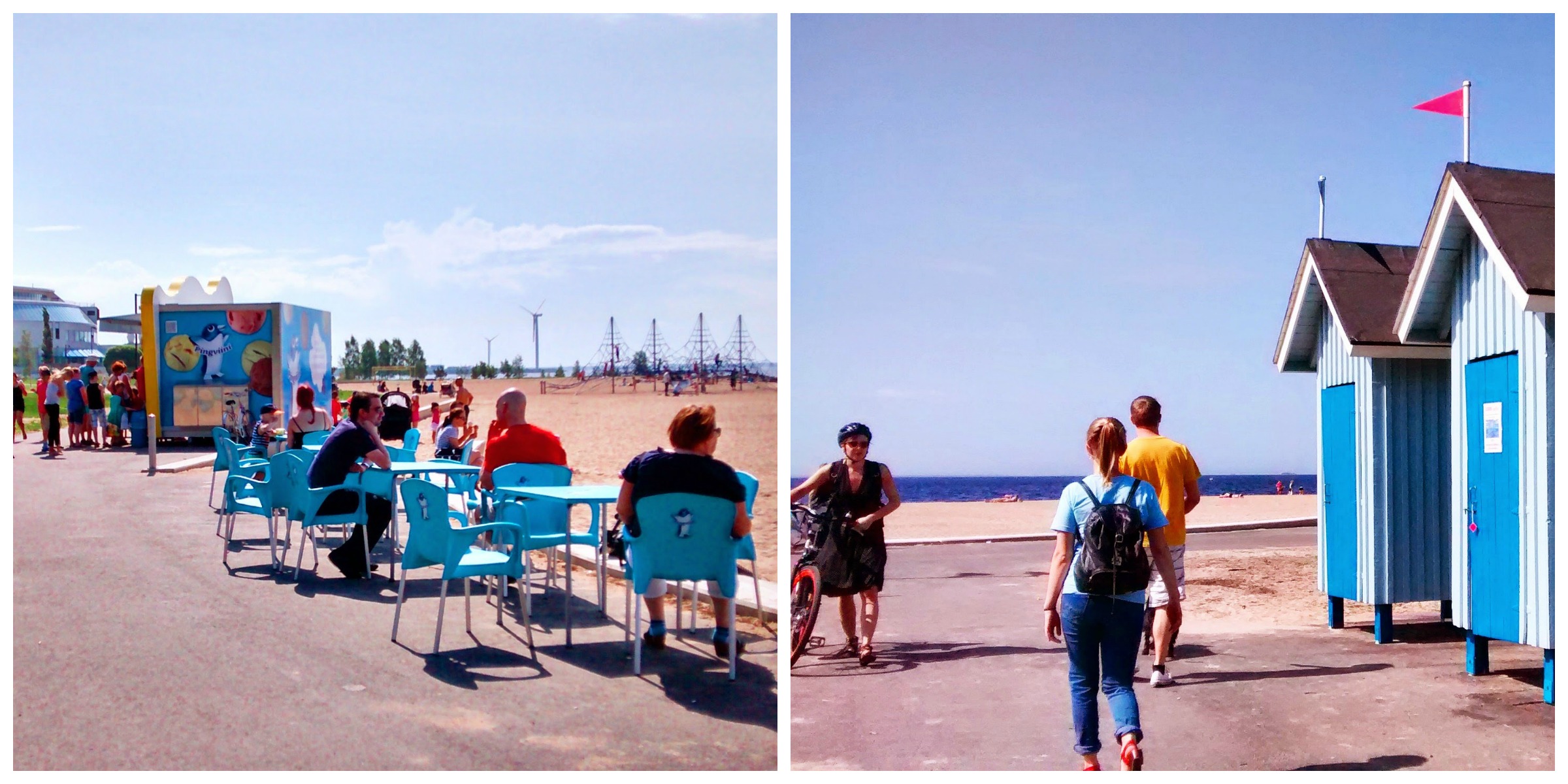 Jatkoimme vielä matkaa alkuperäiseen päämääräämme eli Nallikarin uimarannalle, sillä halusimme nähdä uudistuneen ilmeen kokonaisuudessaan. Ja hienohan sen ranta onkin! Ja näin aurinkoisena lauantaina paikka tietenkin kuhisi porukkaa: lapsiperheitä, auringonottajia, jäätelönsyöjiä, rullaluistelijoita ja muuten vaan rantakävelylle tulleita.