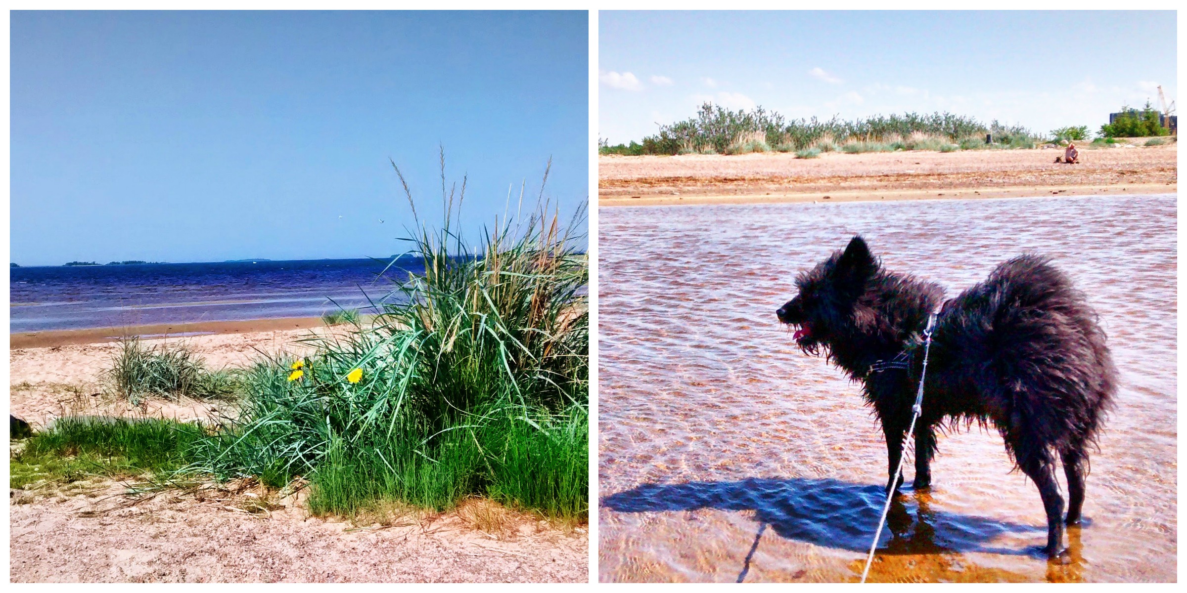 Ihanat kesäsäät hellivät Ouluakin viime viikolla ja kaikki huipentui lauantaihin, kun vihdoin pääsimme koko kahden hengen ja yhden pienen mustan koiran perheellämme hieman viettämään laatuaikaa yhdessä. Auto otettiin alle, mutta sillä ei hurautettu kovin pitälle. Olimme matkalla Nallikariin, kun päätimme ajaa Toppilansaaren asuntomessualueen kautta, ja lopulta siellä saimme päähämme jättää auto parkkiin ja kävellä saaren pienemmälle ja rauhallisemmalle rannalle.