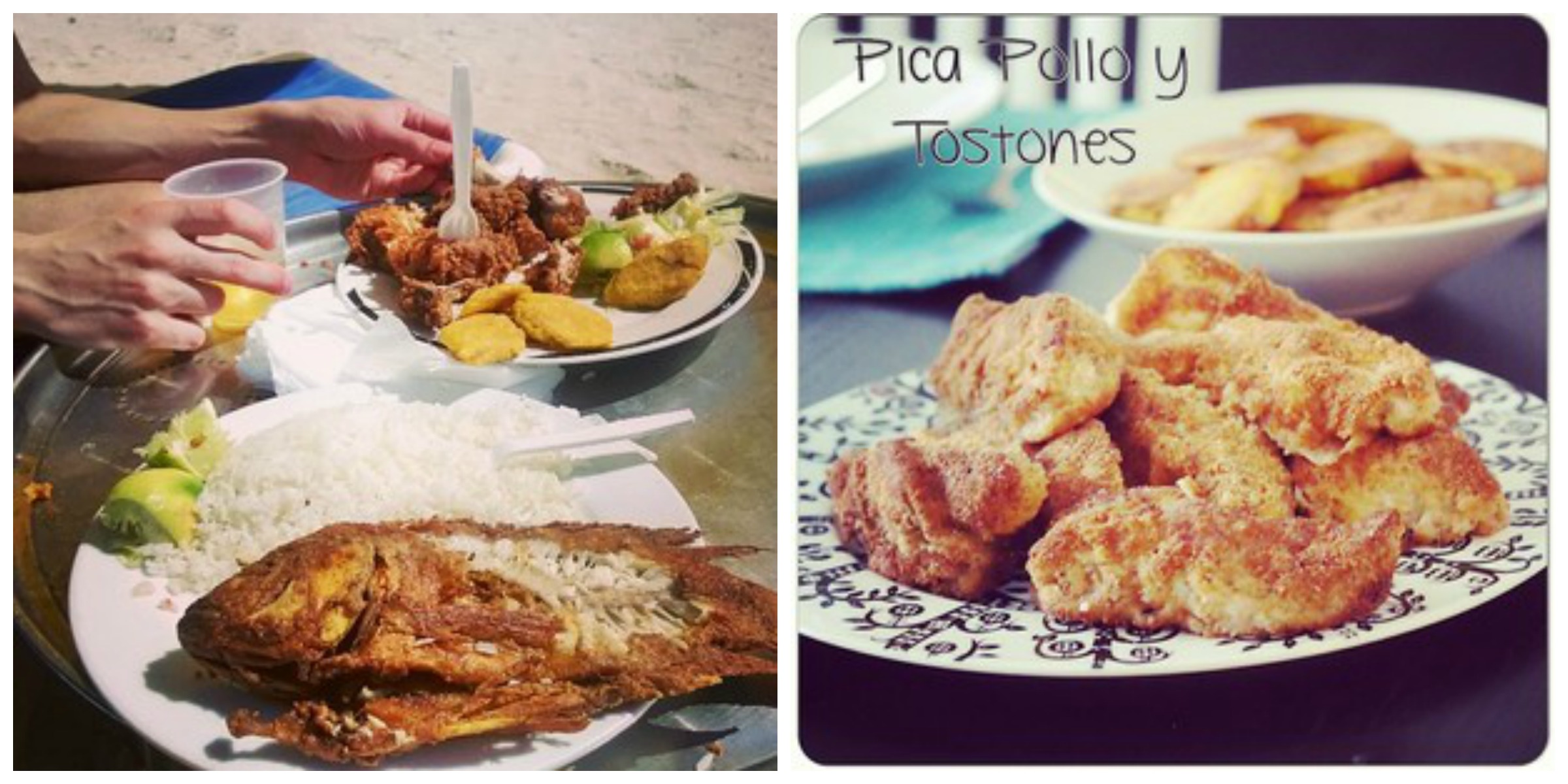 Söimme Boca Chicassa Dominikaanisessa tasavallassa rannalla ihanaa rapeaa friteerattua kanaa sekä tostoneja, paistettuja jauhobanaaneja. Ja mitä tekeekään Heidi, kun pääsee kotiin? Menee tietenkin kauppaan ostamaan kanaa ja jauhobanaaneja!
