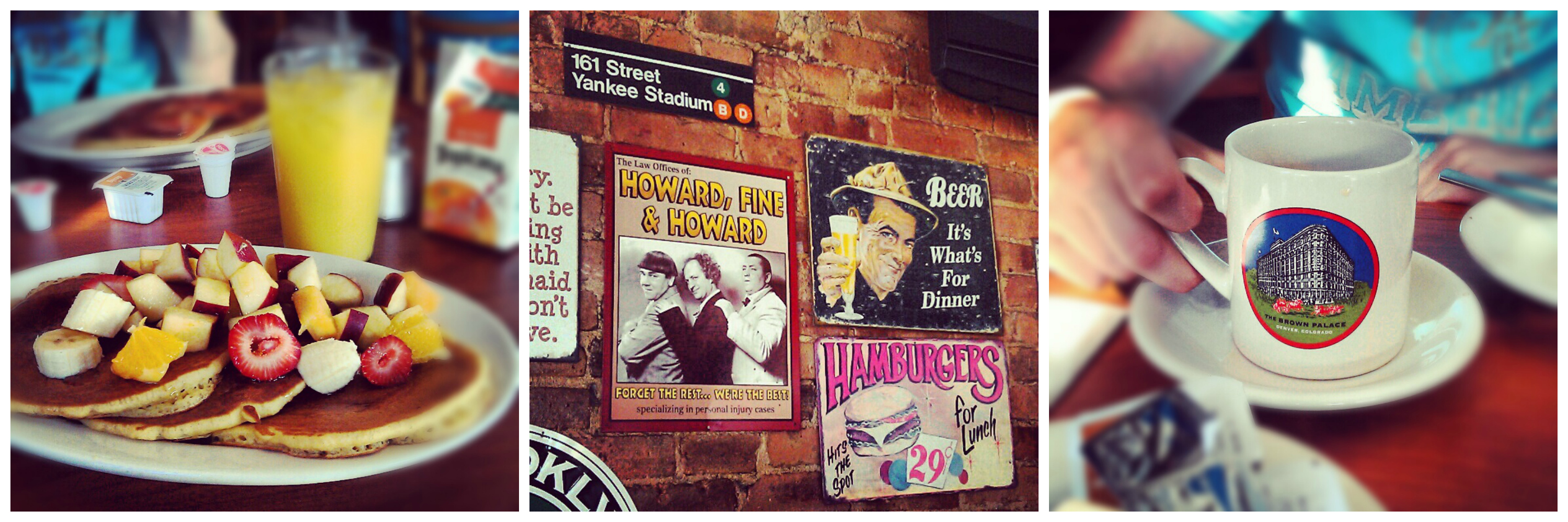 Muutaman vuoden takaisen Brooklynin hotellimme aamupala tarjoiltiin Station Cafe -nimisessä dinerissa muutaman korttelin päässä hotellista ja siitä tuli lomamme aikana yksi suosikeistamme. Söimme lähes aina pannareita ja paikan kreikkalainen omistaja, vanha mies, jututti meitä joka kerta kahvipannu kädessä ja kysellen olemmeko koskaan käyneet Kreikassa. Viime kesänä majailimme Midtownissa Carterissa, missä ei ollut tietenkään aamupalaa, joten saimme hullun idean lähteä aamupalalle Park Slopeen asti. Käymme siellä varmasti pannareilla vielä monta kertaa!