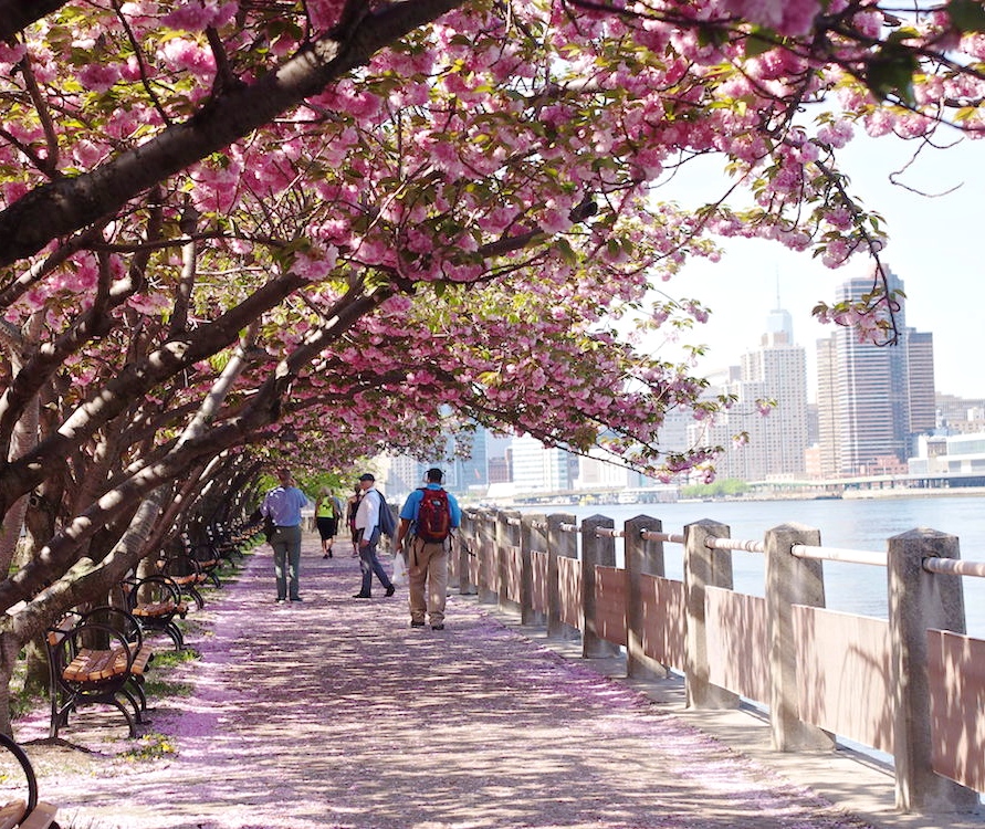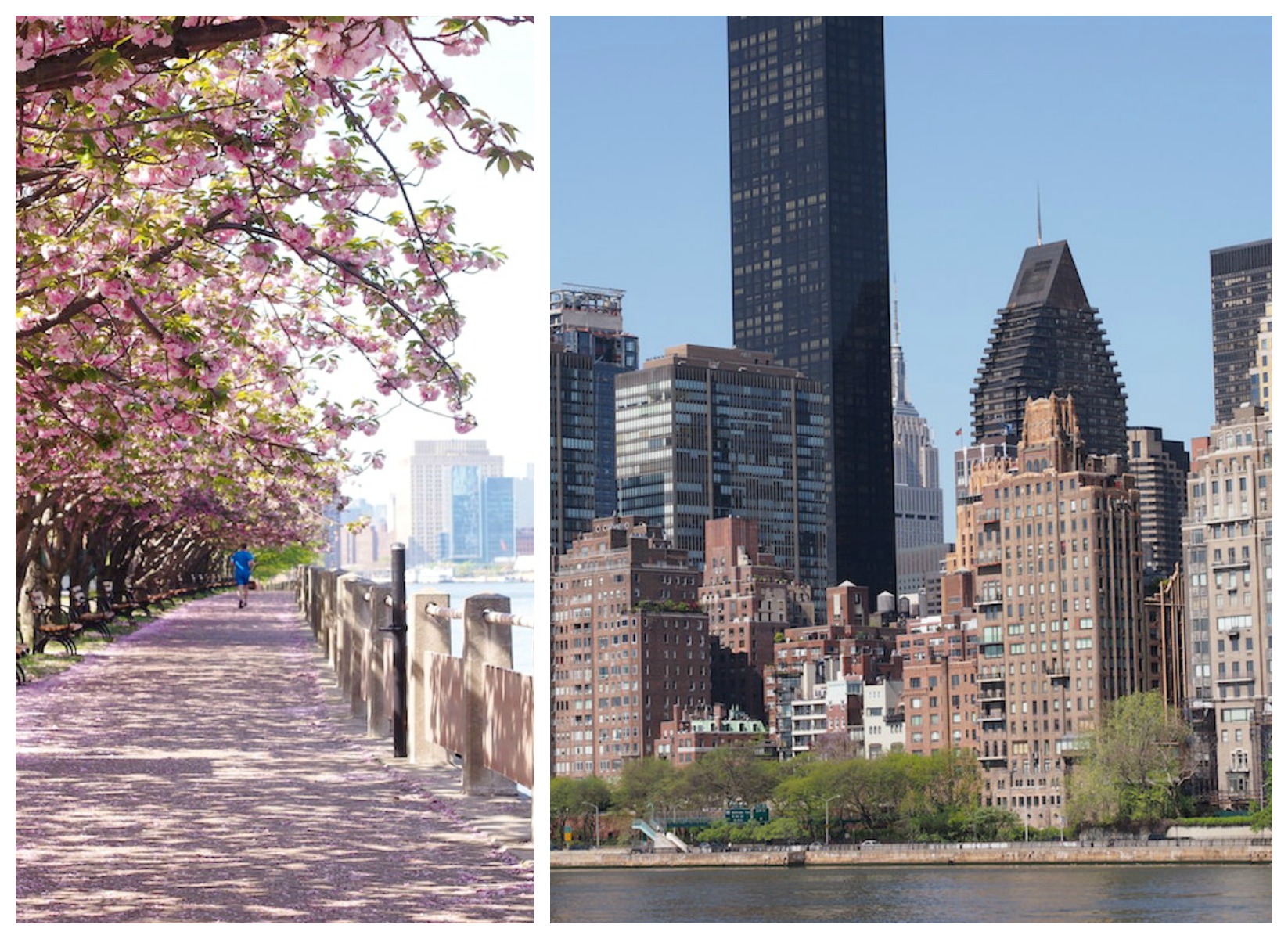 Kävimme ensimmäisellä yhteisellä New Yorkin reissullamme Roosevelt Islandilla pelkästään siitä syystä, että pääsemme ajamaan köysihissillä East Riverin yli ja ihailemaan Manhattanin maisemia yläilmoista. Kävimme samalla kävelemässä hieman saarella, ja huomasimme, että siellähän on varsin viehättävä kävelytie Manhattanin puoleisella rannalla, josta kaupungin skylinea voi ihailla kaikessa rauhassa. Siksipä päätimme poiketa samaan paikkaan myös toukokuisella reissullamme.