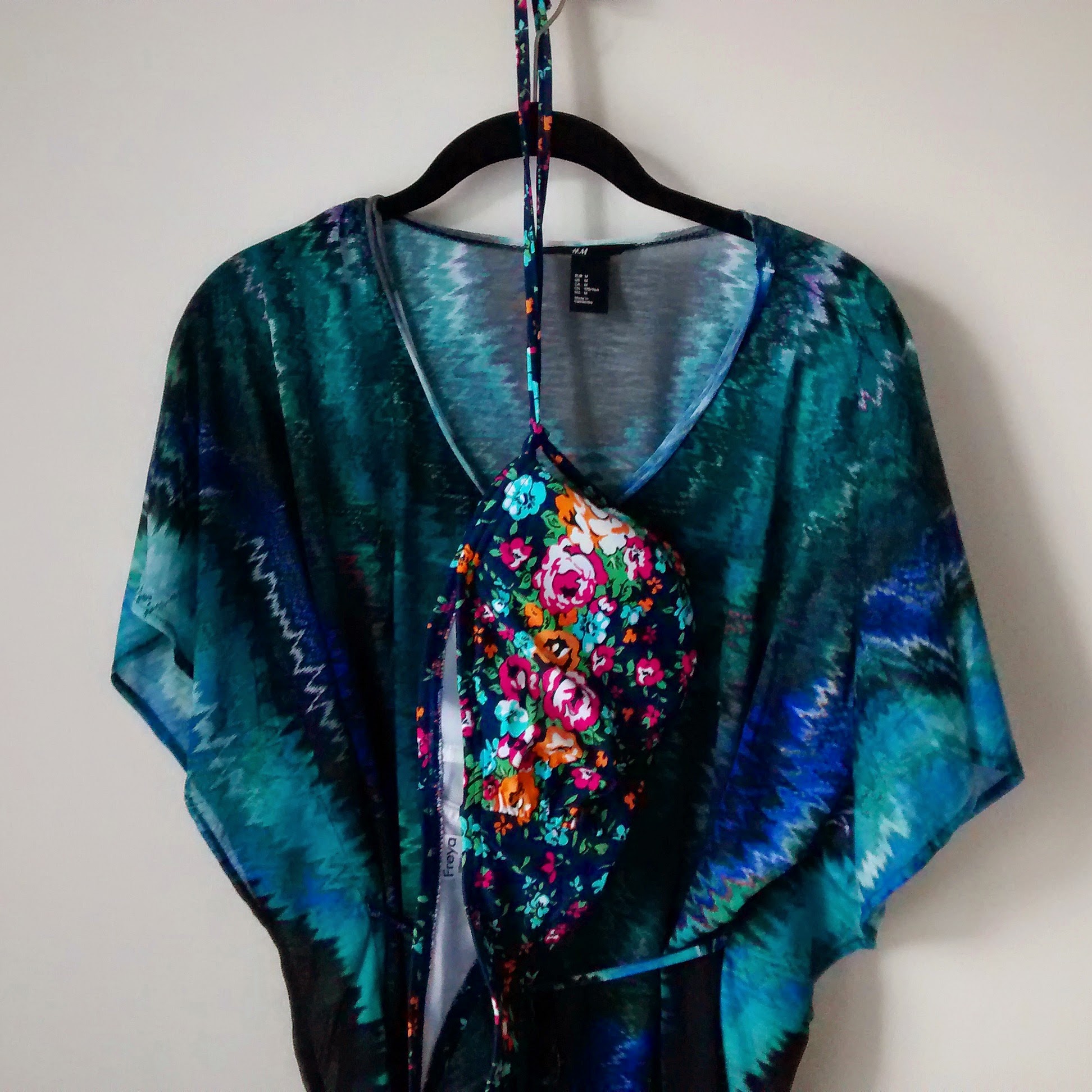 Kaikki alkoi viattomasti uusista bikineistä. Pelkät kukkabikinit ei luonnollisestikaan riitä, vaan niiden ylle tulee heittää joku riepu rannalle siirryttäessä. Kesäalesta löytynyt muutaman euron sinivihreä rantatunika toimittaa hyvin sen virkaa ja eikö näytäkin ihan Bali-vaatteelle? Lisää kukkakuviota löytyy liehuvahelmaisista narutopeista ja kukkamekosta.