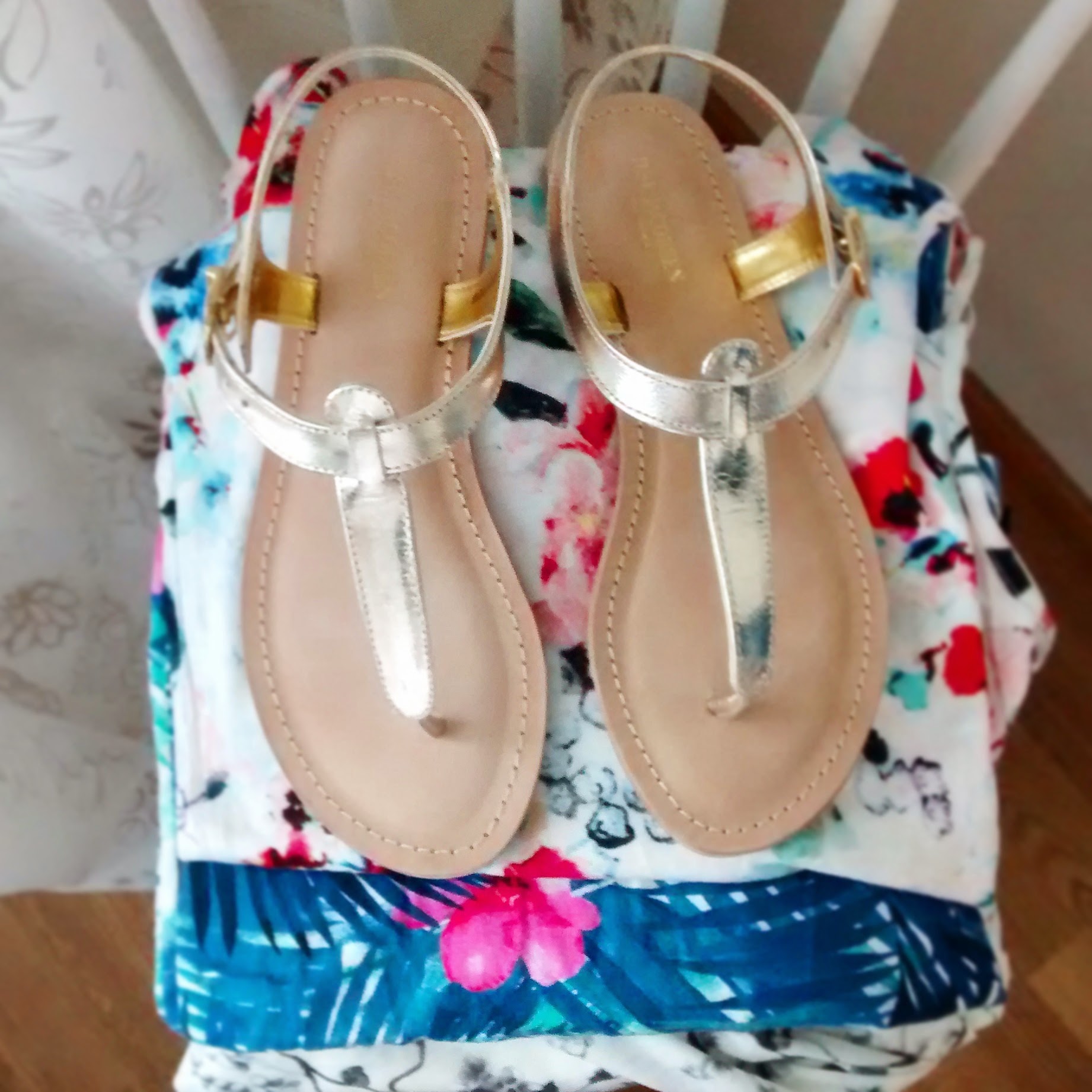 Periaatteessa kävelen reissussa kaikkein mieluiten Ipanema-sandaaleissani, mutta koska Singapore on käsitykseni mukaan ihan tyylikäs paikka, eikä hotellimmekaan ole (toivottavasti) mikään murju, päätin ostaa kultaiset sandaalit. Lättänäpohjaiset kengät on yleensä kaikkein mukavimmat jalassa, mutta kultaremmit tuovat kivaa pientä hienostuneisuutta askeleisiin.