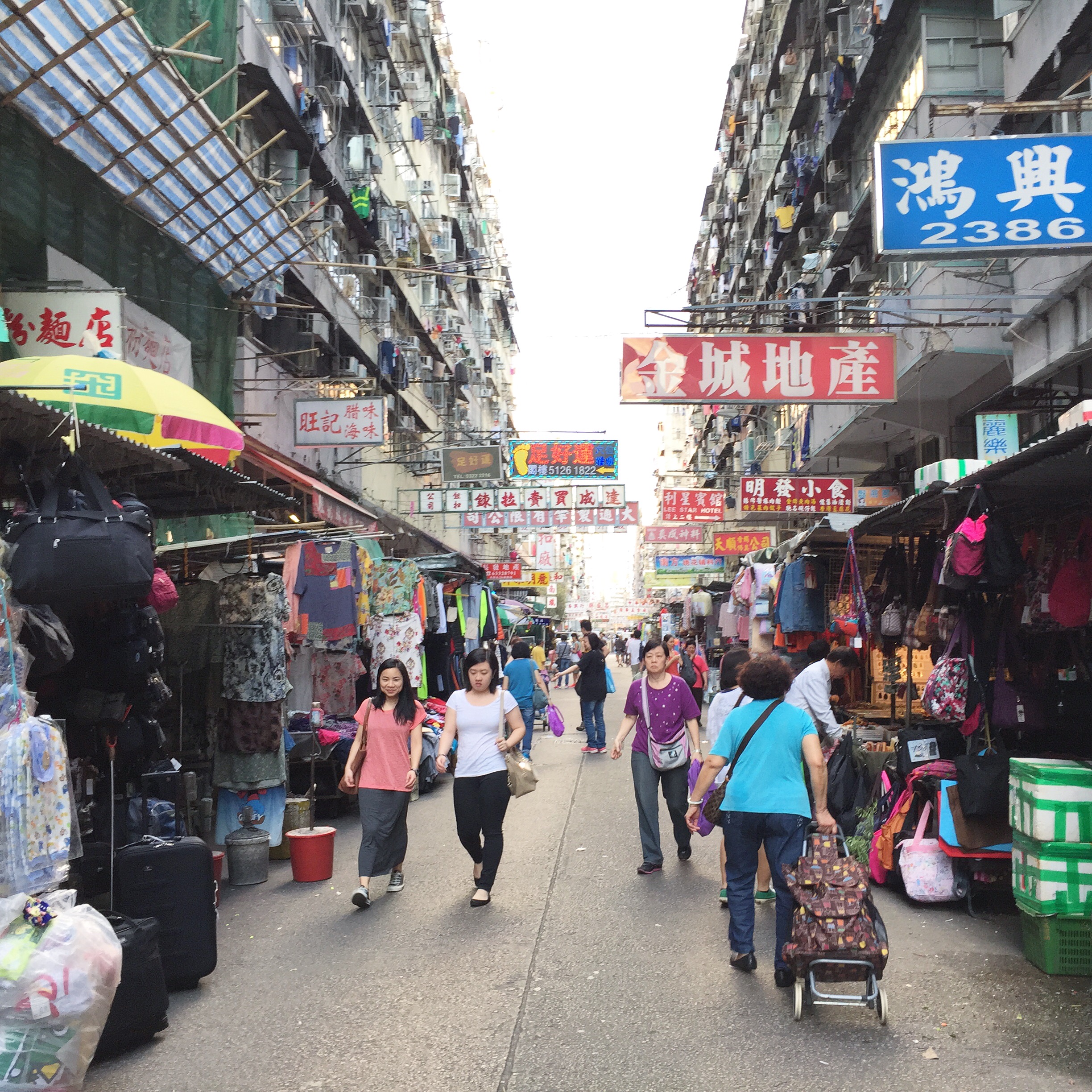 Illalla suuntasimme metrolla Sham Shui Po:n alueelle, missä oli katukaupalla paikallista markkinameininkiä. Myynnissä oli niin kaukosäätimiä ja lamppuja kuin kännykän kuoria ja ruokaa. Halusin ostaa vaatimattoman näkösen pullan (ajattelin sen olevan possupulla) ja muutaman haukkauksen jälkeen huomasimme, että melkoisen mielenkiintoisen ruokavalinnan tein taas kerran. Sisällä oli jotain mustaa hyytelömäistä, joka mitä ilmeisemmin oli jonkinlainen kananmuna! Piti käydä ostamassa pullo kokista, että sain sen alas, heh.