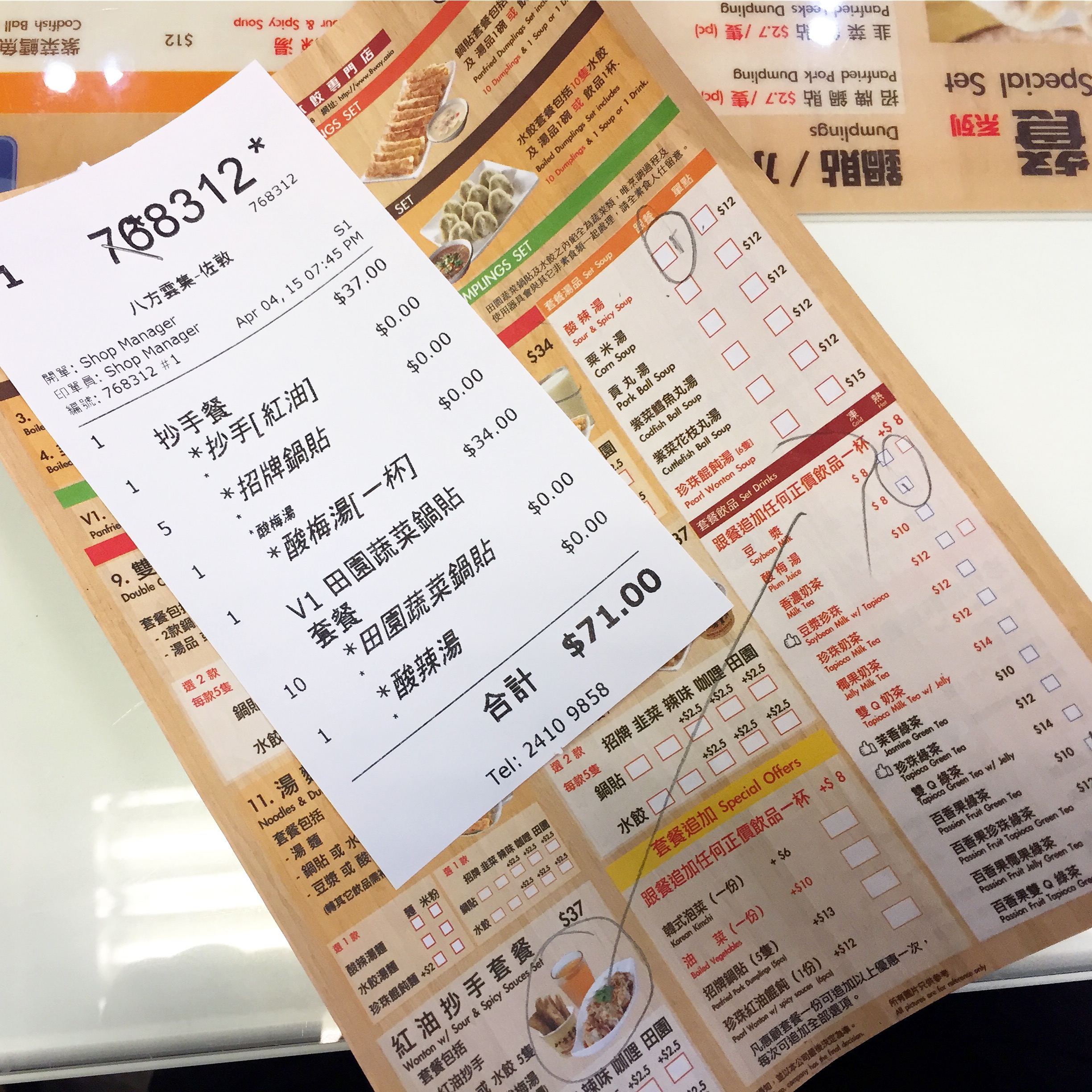 Sham Shui Po:sta menimme Mong Kokin ja Yau Ma Tein välimaastoon, jossa katumeininki jatkui, mutta enemmän katukeittiöiden ja muiden ravintoloiden muodossa. Söimme itsekin varsin herkullisen illallisen, tosin tilaaminen meni jälleen kerran hieman sekavasti. Listassa oli kaikki käännetty enkuksi, mutta varsinainen tilauskuponki ei sisältänyt ihan kaikista asioista käännöksiä. Kysyin tarjoilijalta apuja, mutta vastaukseksi listaan piirreltiin viivoja ja nuolia sinne tänne, emmekä ihan saaneet tolkkua tilaukseemme. Lopulta pöytäämme kiikutettiin yllättävän paljon ruokaa, mutta vain yksi juoma (luumumehu)! Tilasimme vielä pari jääteetä lisäksi, minä jelly-version ihan kokeeksi. Hyvää oli!