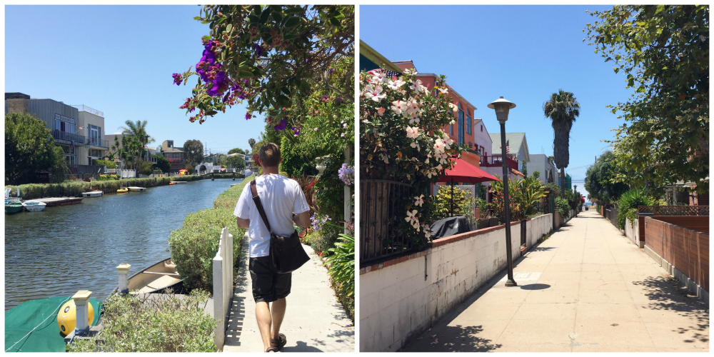 4th of Julyn viettäminen Los Angelesissa on meille jo melkein perinne, kun ollaan täällä tähän aikaan sentäs jo toista kertaa (minä olen viettänyt itsenäisyyspäivää kerran myös Iowassa). Siksipä halusimme noudattaa perinteitä(mme) ja suunnata heti aamusta Veniceen. Jätimme auton samaan parkkiin kuin aikaisemminkin, maksoimme päivämaksun (joka oli edelleen sama 20 dollaria) ja lähdimme kävelemään Venicen kanaalialueelle, mikä taasen oli meille ihan uusi juttu. Sieltä kiepsahdimme tutulle rantakadulle ja seurasimme hetken niin koripalloilijoita, lihaksenpullistelijoita kuin skeittareitakin. Puhumattakaan kaikesta muusta, mitä vilkkaalla kadulla tulee vastaan.