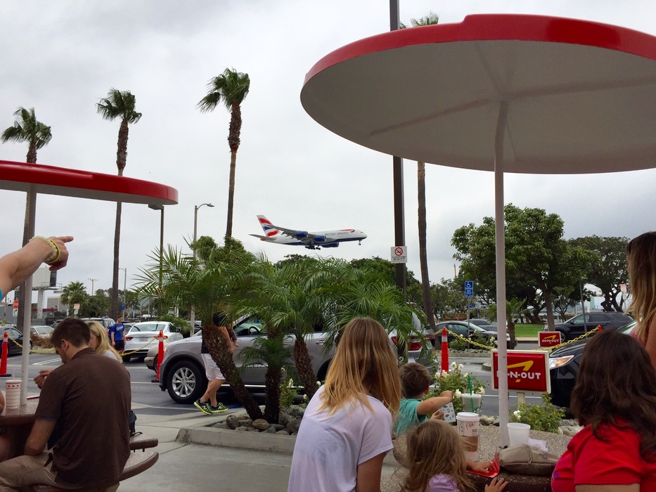 - LAXin kentän vieressä on In-N-Out, jonka terassilla voi nauttia viimeiset herkkuburgerit ennen kotimatkaa ja samalla seurata laskeutuvia koneita, täydellinen loman lopetus!