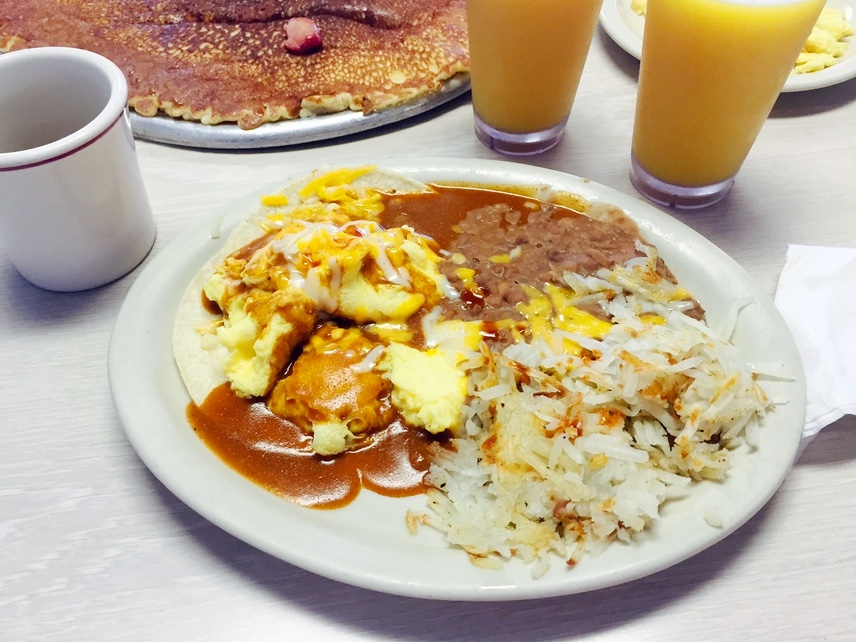 Kolmas diner oli sitten paljon autenttisempi eikä mikään ketjupaikka, Pappy’s Diner Tucsonissa. Kokemus oli mieleenpainuva, eikä vähiten annosvalintojemme suhteen: omalla lautasellani edusti tällä kertaa huevos rancheros, mutta Antti sai eteensä jättimäisen pannukakun! Lue aamupalaseikkailumme kokonaisuudessaan täältä.
