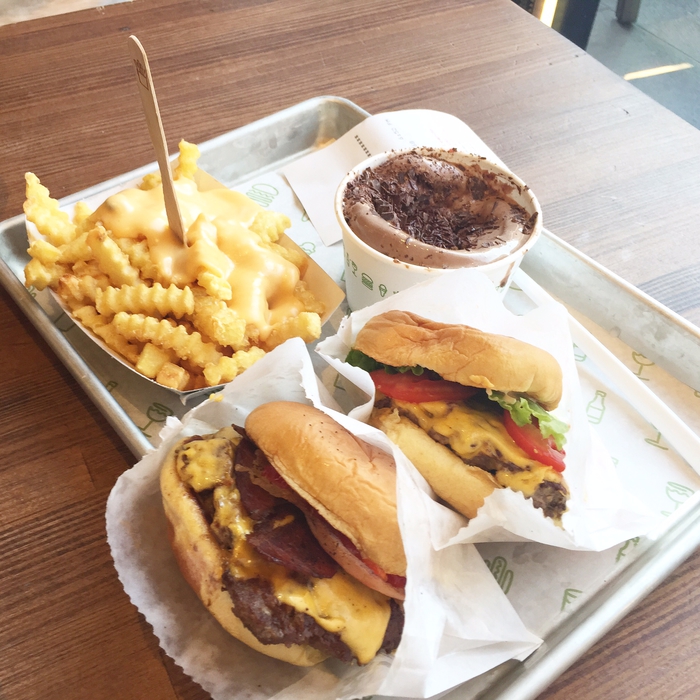 Toinen ikisuosikkimme on tietenkin Shake Shack. Ja nyt moni saattaa miettiä, että miten se liittyy länsirannikon puolelle tehtyyn reissuumme, kun kyseinen ketju majailee lähinnä itärannikon puolella ja joissakin valikoiduissa paikoissa maailmalla. No siten, että Las Vegasiin New York New York -casinolle on aika vasta avattu myös länsipuolen ensimmäinen Shake Shack. Sanon aina, että mikään ei voita alkuperäisen Madison Square Parkin ulkoilmagrillin tunnelmaa, mutta kyllähän ne shack burgerit , smoke shackit ja juustoranut maistuivat myös Vegasissa!