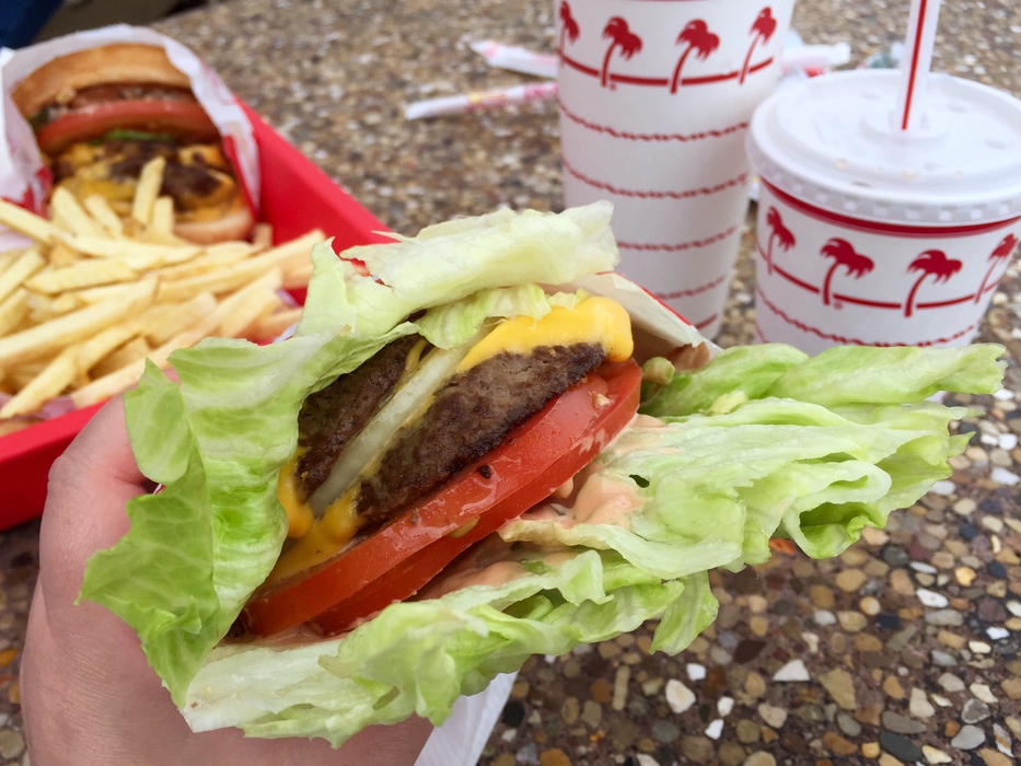 Jos menee Jenkkeihin eikä syö siellä yhtään hampurilaista on ihan hullu. Ja samaan hengenvetoon voisin todeta, että ei ole myöskään kovin järkevää jättää kokeilematta In-N-Outia, sillä sieltä saa ainakin länsirannikon parhaimmat hampurilaiset. Ja vielä todella kohtuulliseen hintaan! Double double -hampurilainen animal stylen kera on niin hyvä, että saman reissun aikana on ihan pakko päästä syömään toinenkin. Ja ehkä kolmas. Kannattaa kokeilla myös protein style -versiota, raikas!