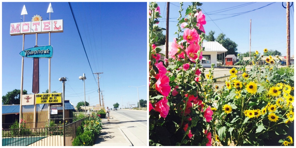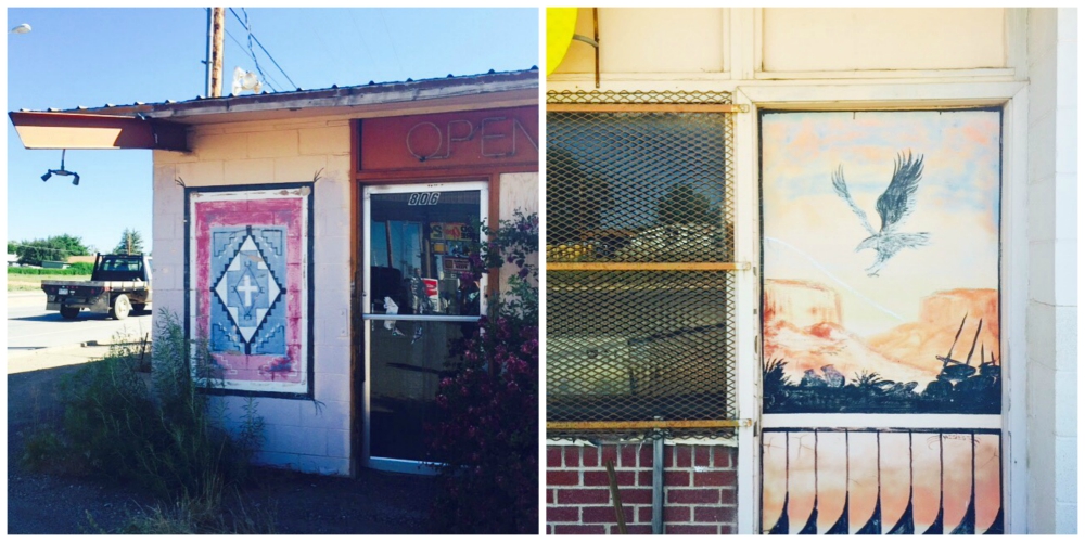 Seuraavana aamuna söimme pikaisen motelliaamiaisen ja suuntasimme pienelle aamulenkille kameroiden kanssa. Päätien varrelta löytyi vintage-kylttejä, turkoosi kioski ja grilli kuin suoraan elokuvista. Myöhemmin ohitimme autolla hieman länkkärihenkisen keskustan ja psyähdyimme laitakaupungilla kuvaamaan erään kaupparakennuksen seinällä olleita rapistuneita maalauksia sekä viereistä motellia. Vähän matkan päässä pysähdyimme uudelleen, sillä huomiomme kiinnittyi autioituneeseen huoltoasemaan.