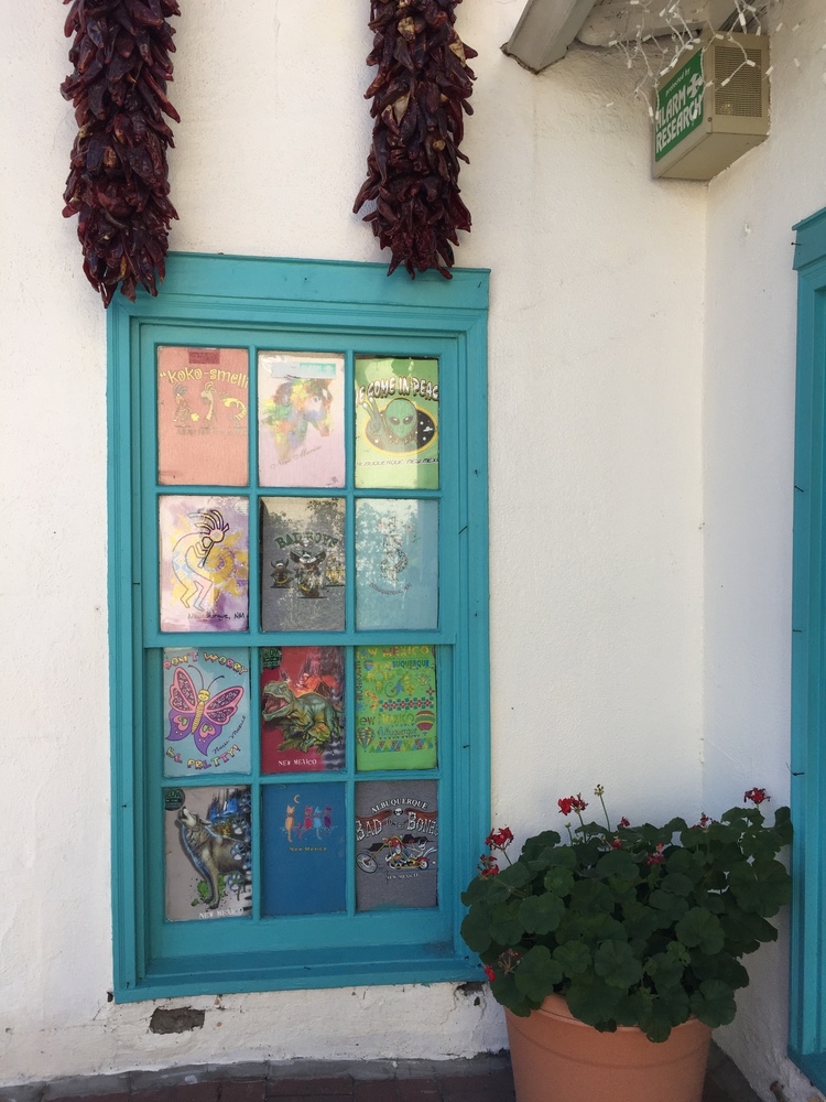 Seuraavana päivänä meillä oli hieman aikaa kierrellä Albuquerquen vanhassa kaupungissa. Olimme sen verran aikaisin liikenteessä, että kovin moni paikka ei ollut auki, mutta toisaalta muut turistit eivät olleet vielä liikenteessä. Alueen talot ovat ihastuttavan pyöristettyjä ja ruskean eri sävyisiä (kuten Albuquerquessa tyypillisesti on) ja jokaisen talon nurkalta roikkui kuivattuja chilipaprikoita. Keskuspuiston laidalla oli vanha Mummo Ankan auton tyylinen ajoneuvo tiessä kiinni, joten luulin sen olevan joku turistijuttu. Hetken autoa tiirailtuani (ja melkein sen etupenkille hypättyäni) huomasin kuitenkin, että kyseessä oli ihan oikesti ajossa oleva auto ja myöhemmin kuulin, että joku tyyppi oli just ajanut sillä siihen parkkiin. Huh, hyvä, etten joutunut putkaan autovarkauden yrityksestä!