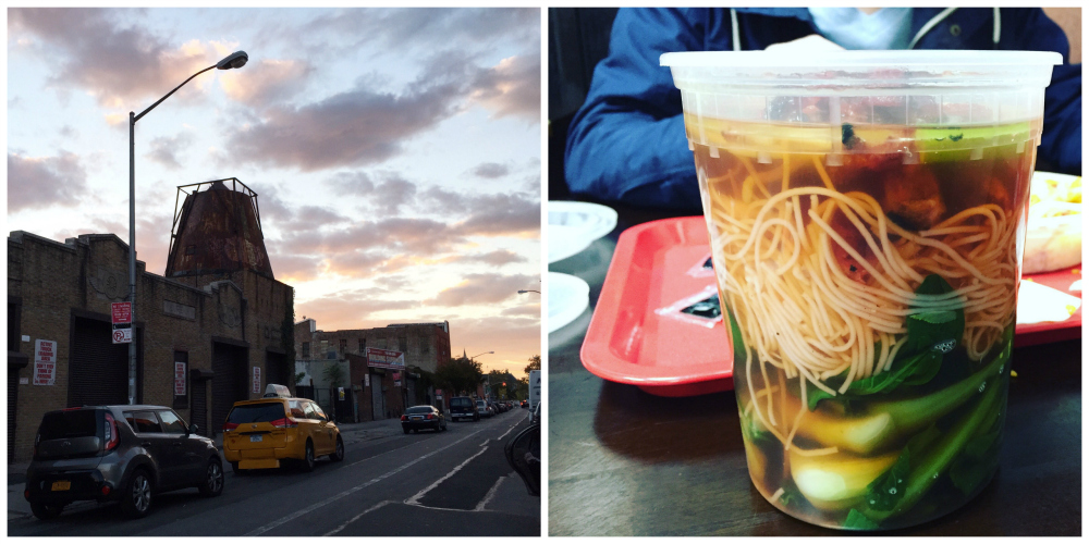 Oltiin illalla aika väsyneitä, mutta kipaistiin läheiselle Park Slopen pääkadulle eli 5th Avenuelle ja syötiin nopeasti lähikiinalaisessa nuudelikeittoa ja paistettua riisiä. Ja tuli taas todettua, että kannataisi aina tilata yksi annos puoliksi, sen verran paljon syömistä näissä aina on. Tosin kylläpä vaan nyt olis jo nälkä uudelleen, kun kello on kolme yöllä ja minä jetlag-pää olen valvonut jo tunnin. Kyllä panarit tulee maistumaan!