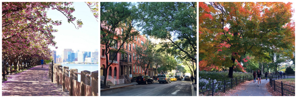 …vai onko? Entäpä jos käveletkin West Villagen idyllisiä katuja brownstonien ja vehreiden puiden katveessa? Tai eksyt valtavaan Central Parkiin? Tai suuntaatkin kilometrien pituisille rannoille, esimerkiksi Coney Islandia rauhallisemmalle Rockaway Beachille? Tai istut illalla Brooklyn Bridge Parkissa ihailemassa kaupungin valoja, melkein yksin? Tai kävelet kirsikankukkien leijailessa Roosevelt Islandilla, aivan Manhattanin skylinen vieressä?