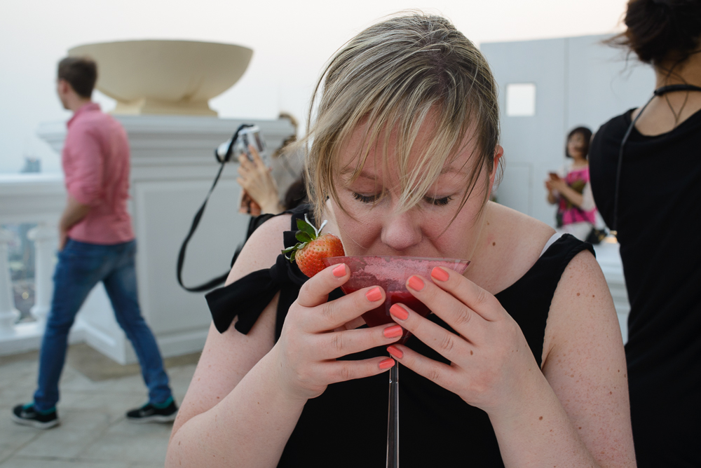 Lebua jakaa mielipiteitä, mutta meidän mielestä sen hinta-laatusuhde oli tosi hyvä, saimmehan majoituksen suhteellisen edullisesti. Viimeisenä iltana kävimme tietenkin hotellin kattobaarissa, joka on yksi Bangkokin tunnetuimpia. Näkymät auringonlaskun aikaan on kyllä upeat! Yhdet drinkit juotuamme vaihdoimme kuitenkin korkkarit flipflopeihin ja suuntasimme Chinatowniin syömään. Illan lopuksi ajelimme tuktukilla neonvärejä hehkuvassa kaupungissa, se on ehkä kuitenkin enemmän sen meidän juttu!