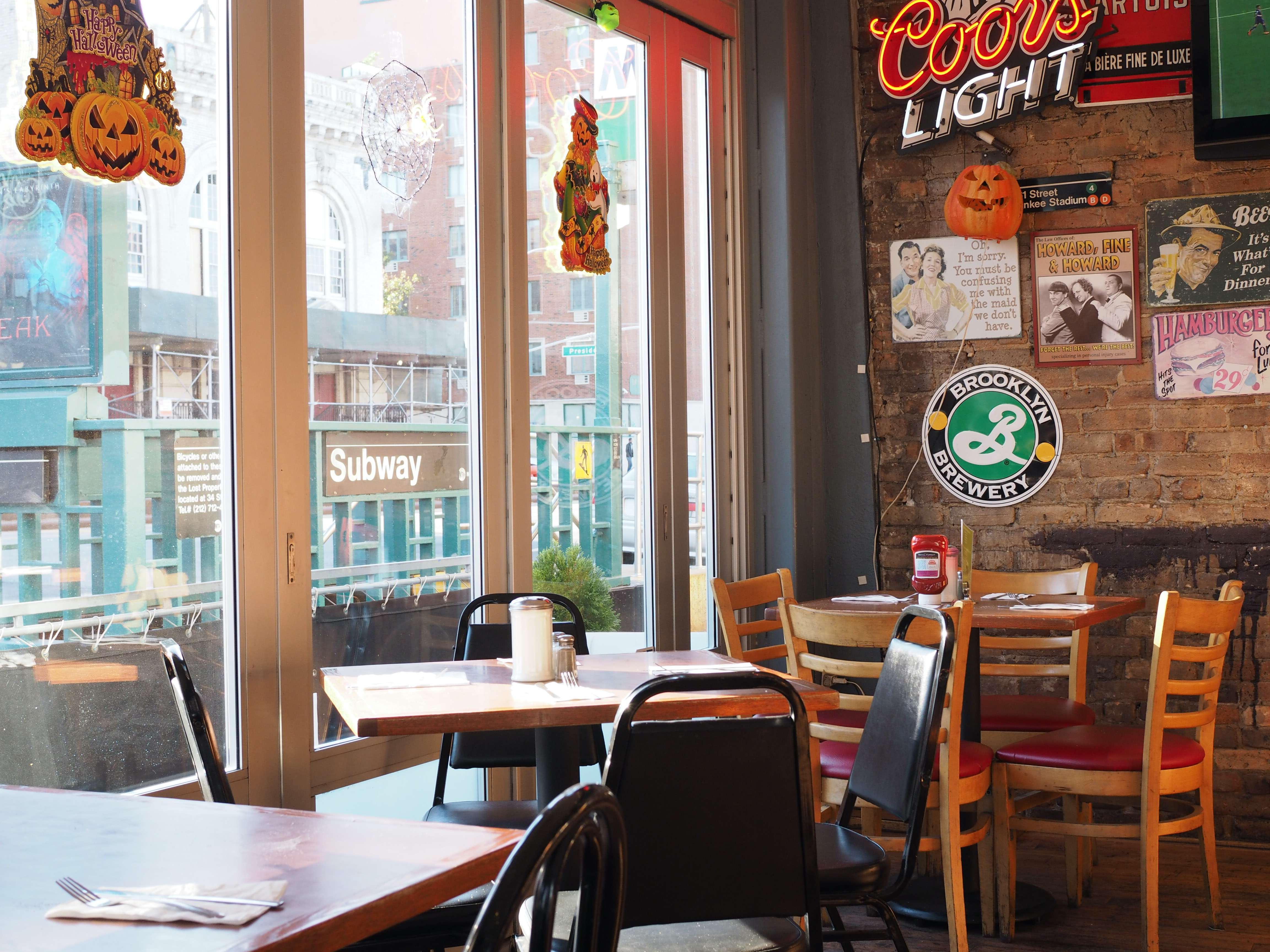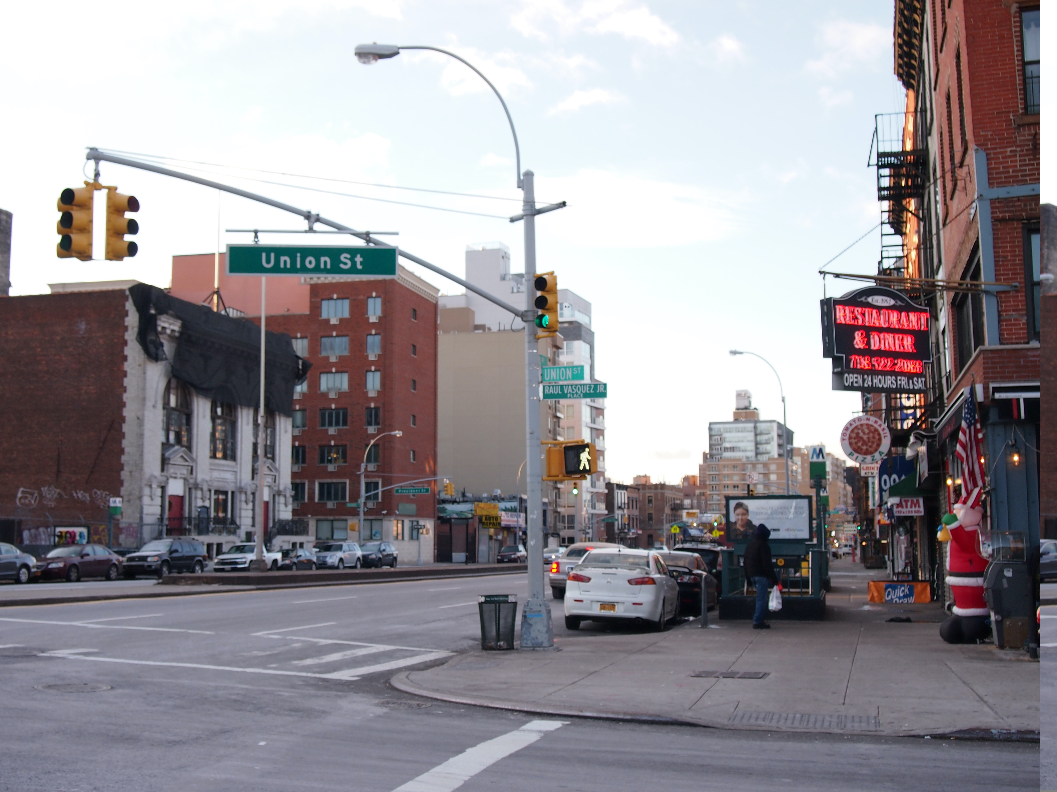 New Yorkissa majoitus on tunnetusti kallista, eikä Brooklynin puoli ole mikään budjettimatkaajan unelma sekään. Vietimme kaupungissa uutta vuotta 2012 ja sopivan majoituksen löytäminen oli tuskallista. Valitsimme lopulta Union Hotelin pienimmän huoneen, joka osoittautui vain hieman parisänkyä isommaksi. Kylpyhuone sen sijaan oli suhteettoman suuri, joten säilytimme matkalaukkuja siellä. Ainoa hankaluus siinä oli lämpötila, sillä kylppäri oli lähes kohmeessa erityisesti aamuisin. Ostimme kerran lähibaarista bagelit, josta jaksoin syödä vain puolet. Jätin toisen puolikkaan säilöön kylppärin lattialle kuin jääkaappiin ikään. Huonehintaan kuului aamupala, joka tarjoiltiin läheisessä dinerissa, jonka kreikkalainen omistajapappa tarjoili kahvia ja tarinoi meidän kanssa Euroopasta. Olemme syöneet tuossa samaisessa Station Cafessa aamupalaa myöhemminkin, ja harmiksemme omistaja jäi eläkkeelle muutama vuosi sitten eikä dineria enää ole.