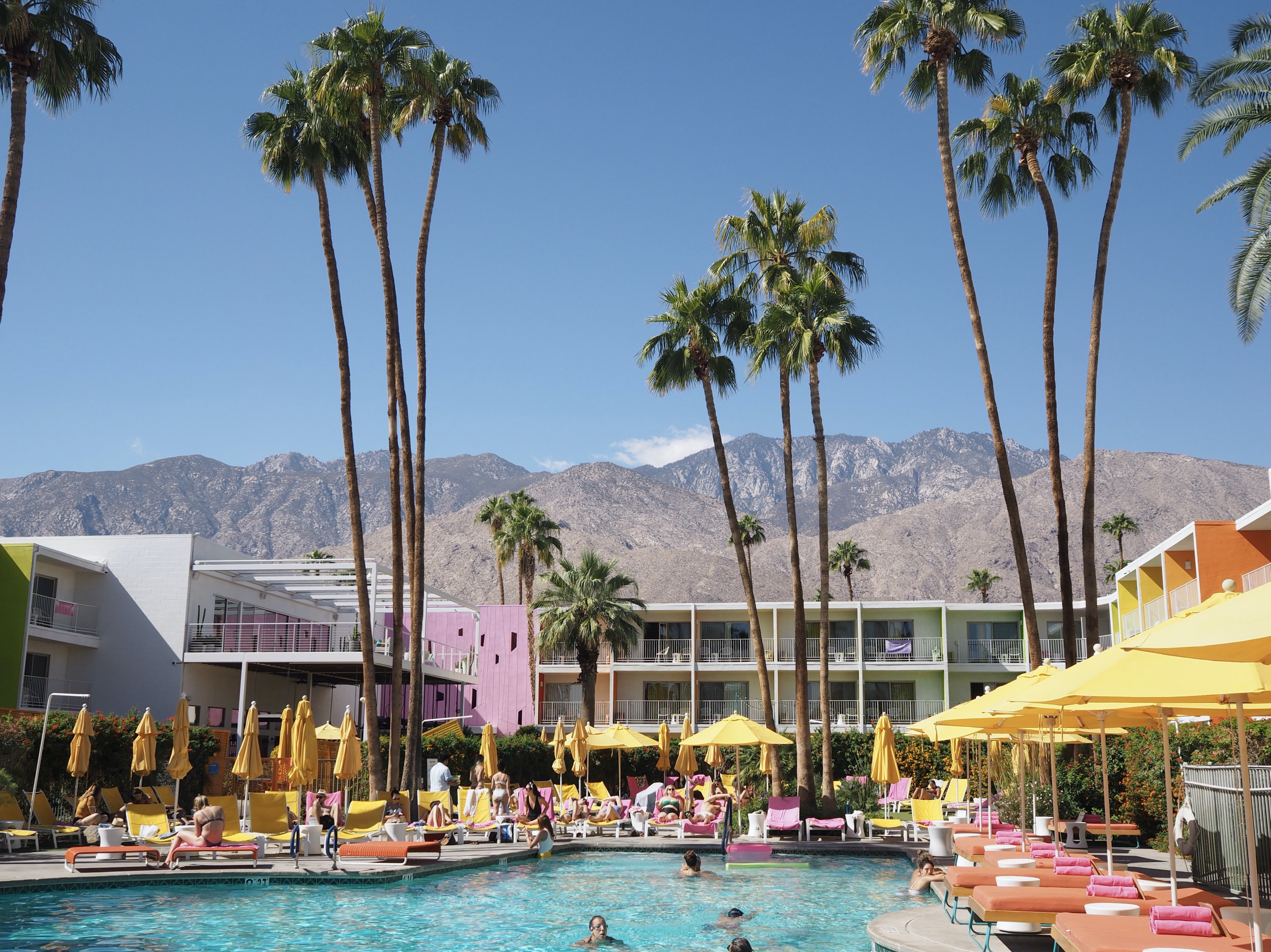 Kahden vuoden takaisella länsirannikon roadtripillä majoituttiin lähes poikkeuksetta motelleissa, jotka ovat yleensä ihan ok vaihtoehtoja. Palm Springsin ja Vegasin osuuksilla haluttiin ottaa vähän lomaa lomasta, joten valitsimme väriloistostaan tunnetun Saguaron sekä hulppean sviitin Hard Rockista. Saguaron parhaita puolia oli sen uima-allasalue, jossa palmun ja vuoret sekoittuvat samaan maisemaan. Harmi vaan, että silloin 9 kuukauden ikäinen vauvamme järkyttyi altaan viileästä vedestä (ei ilmeisesti vetänyt vertoja Oulun Edenille, missä hän oli tottunut polskimaan), joten kovin kauan aikaa emme saaneet tuosta kaikesta nauttia.